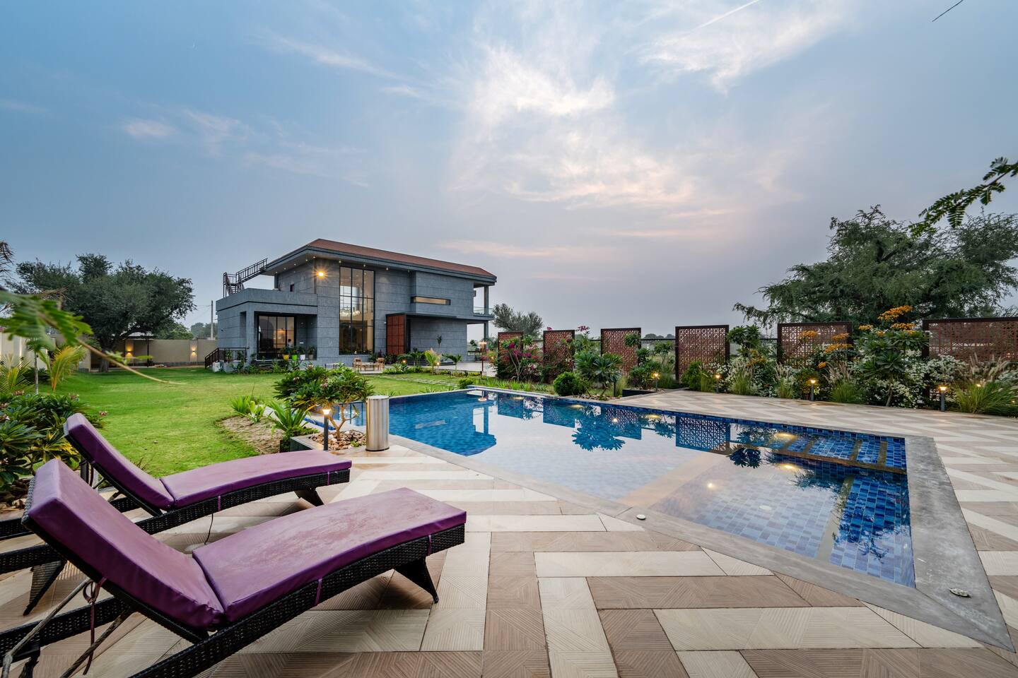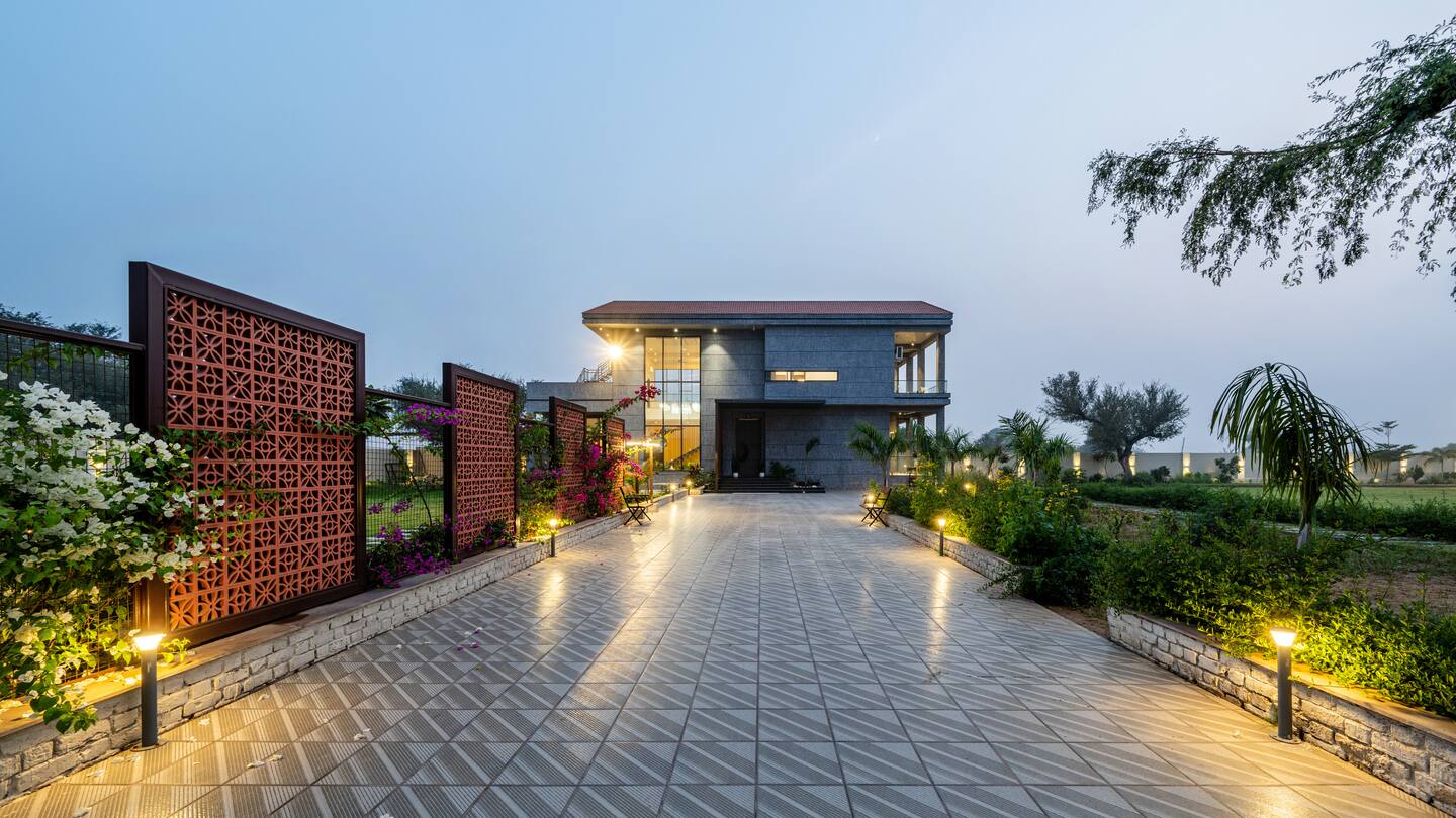 “Aurum” is Latin for gold, and this farmhouse is designed for those who want a touch of the “Golden Life.” The Aurum Farm is polished, premium, and sophisticated. It steps away from the rustic look and leans into modern luxury with elegant interiors, warm lighting, and high-end finishes. It’s a fantastic choice for evening parties because the lighting design makes the whole place glow at night. Whether you are hosting a cocktail party or a classy family dinner, the vibe here is upscale. It’s for the guest who wants their stay to feel expensive and exclusive.