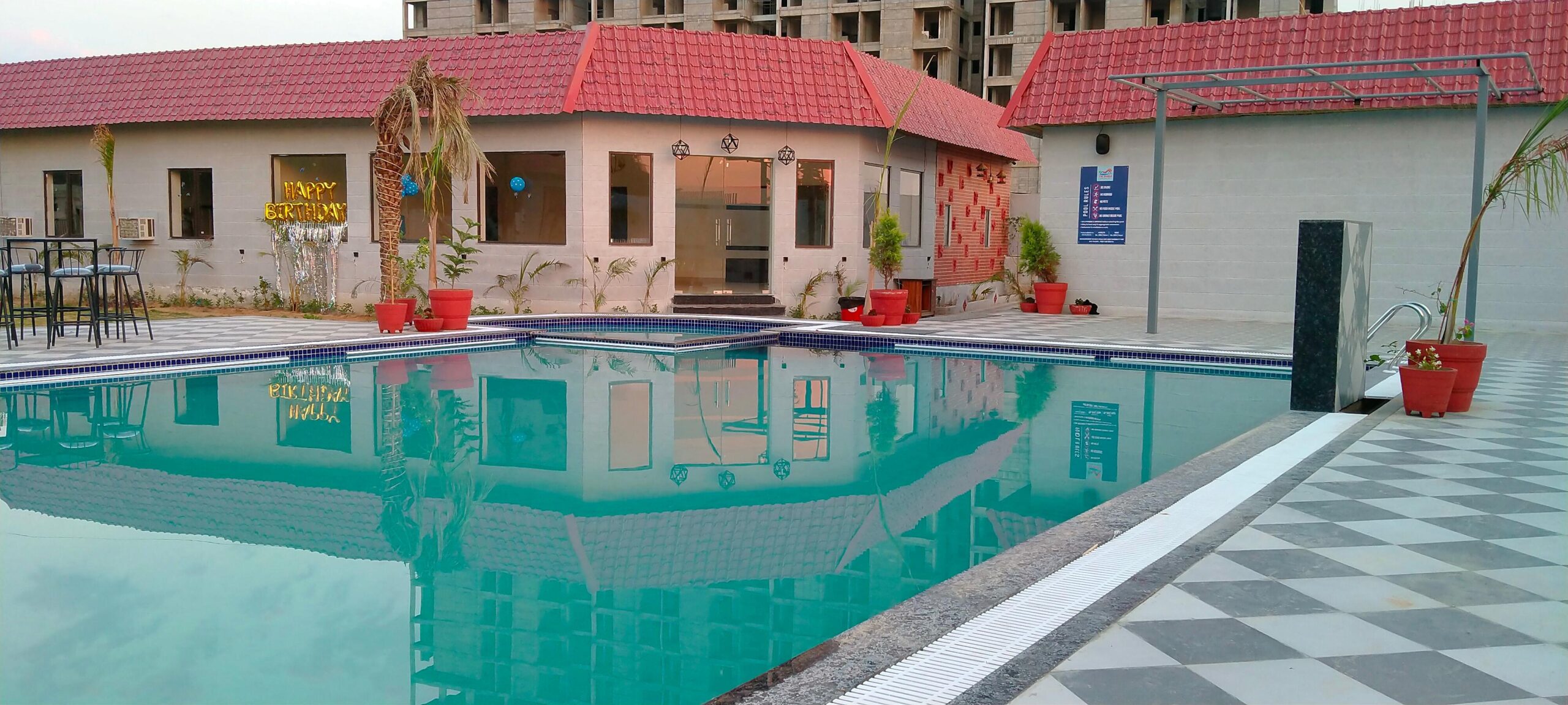 | Swimming Pool | Large Pool with Kids’ Pool & Rain Dance Setup |